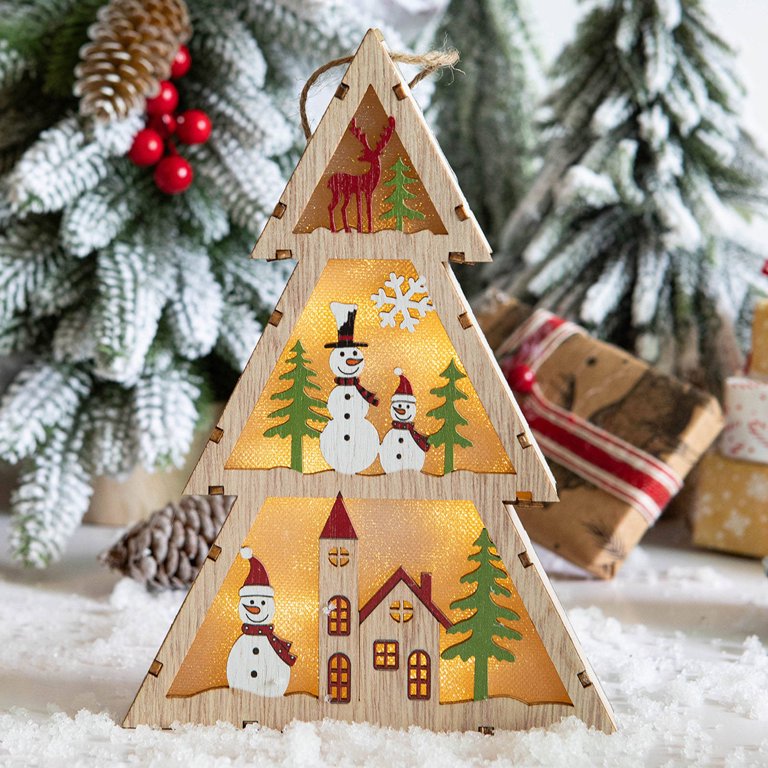 Christmas Tree Shape Santa Elk Snowman Pattern Wooden Christmas Decoration Night Lights Walmart Com
